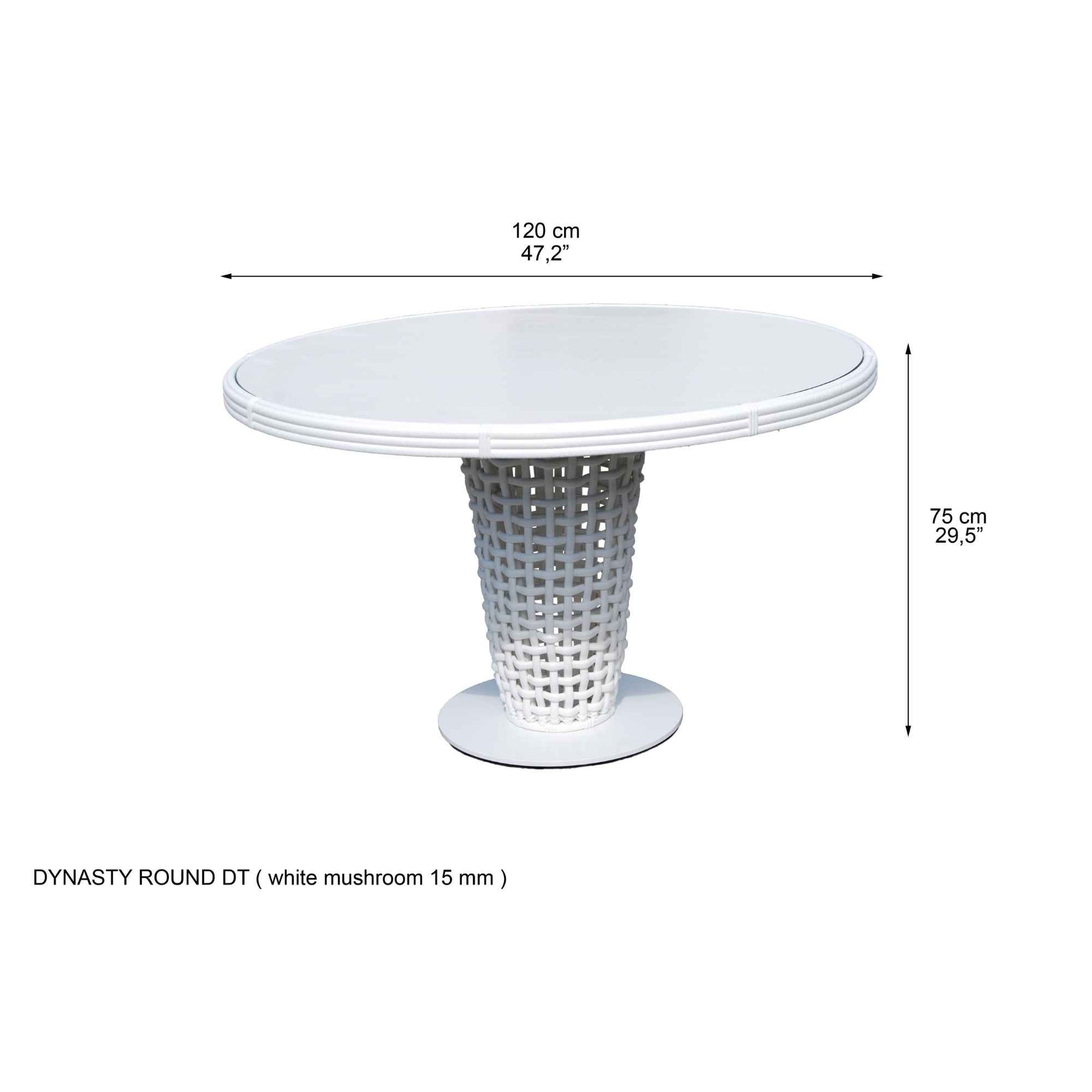 The Dynasty Round Dining Table with Glass combines luxury and durability, making it an exquisite centerpiece for outdoor dining spaces. Built with a commercial-quality extruded aluminum frame and wrapped in handwoven synthetic outdoor fibers, this table ensures lasting beauty and resilience against the elements. The tempered glass top enhances elegance while providing a smooth and easy-to-clean surface. Its open-weave design adds a modern touch, making it ideal for patios, resorts, and poolside settings.