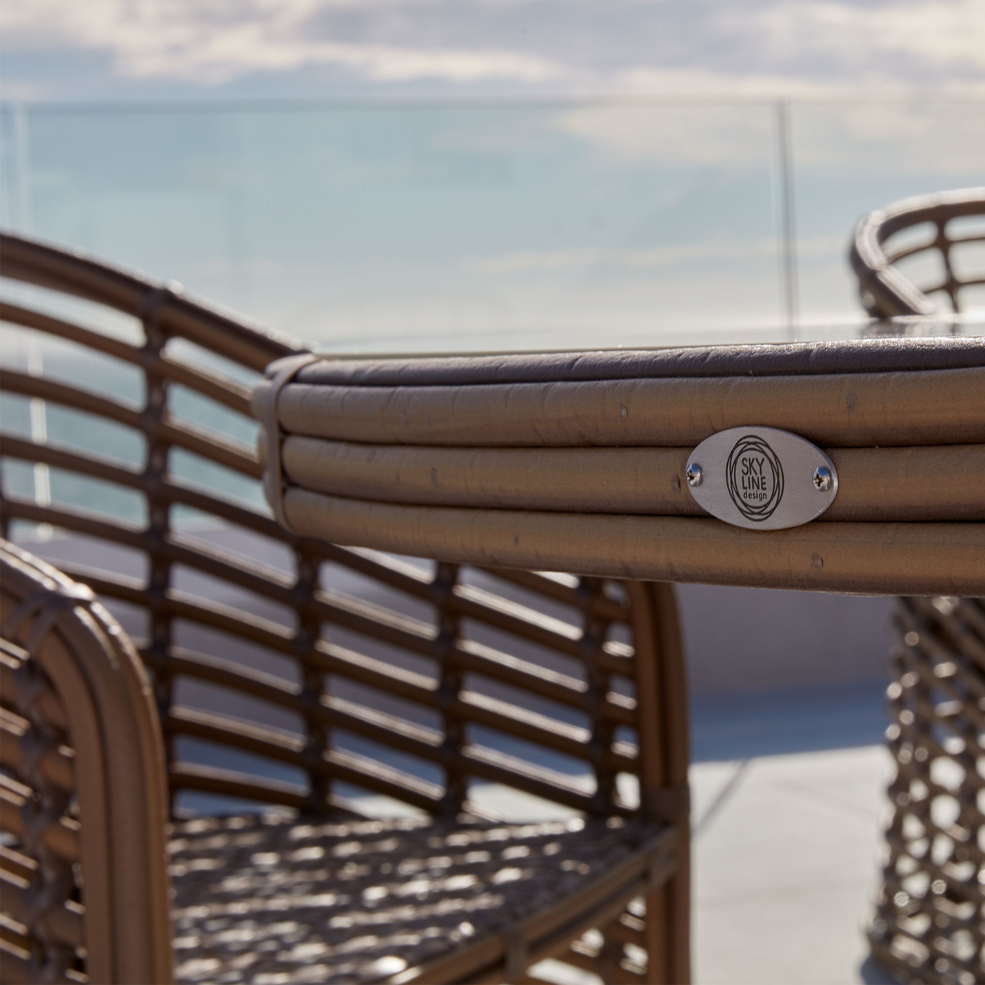 The Ruby 7-Piece Dining Set brings resort-style elegance to your outdoor space. Featuring six curved dining chairs and a round glass-top table, this set is designed for relaxed outdoor entertaining—ideal for brunches, dinners, or sunset drinks. Built to commercial standards with all-weather materials and plush cushions that can be customized with a variety of Sunbrella fabrics.