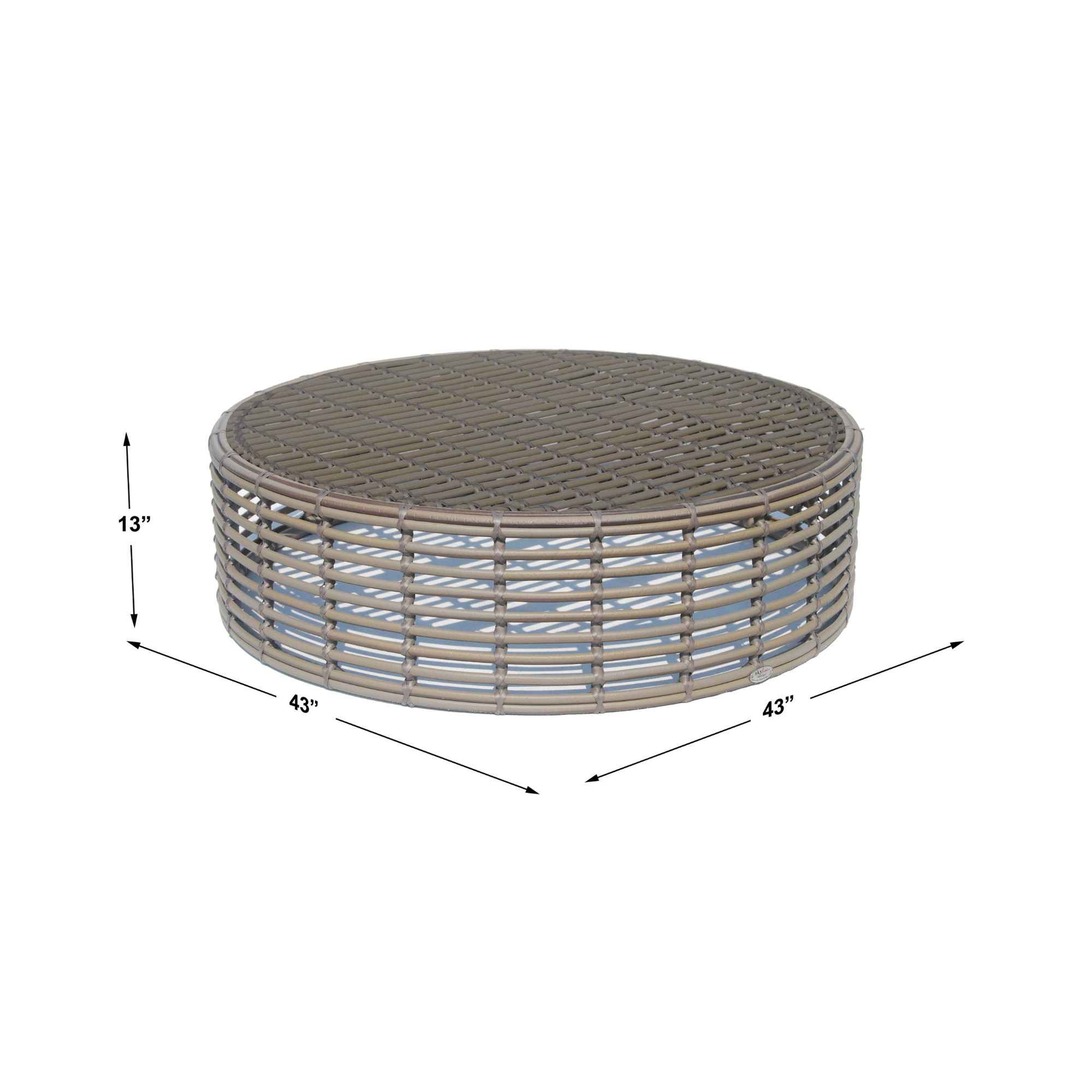 The Halo Coffee Table blends modern elegance with functional design, making it a stylish focal point for outdoor seating areas. Crafted with a durable aluminum frame and handwoven synthetic fiber, it offers superior strength and weather resistance. The tempered glass top enhances durability while providing a sleek surface for drinks, décor, and essentials. Its low-profile, round shape seamlessly integrates with the Halo collection. Available in Black and Kubu Mushroom finishes, this table complements contemporary outdoor settings with ease.