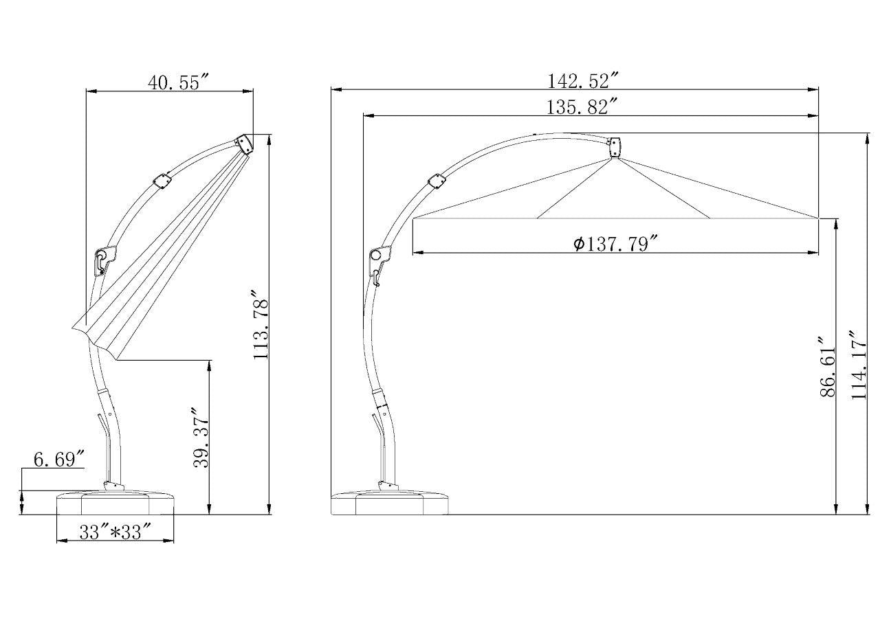 Overall Dimensions: 142"L x 142"W x 114"H